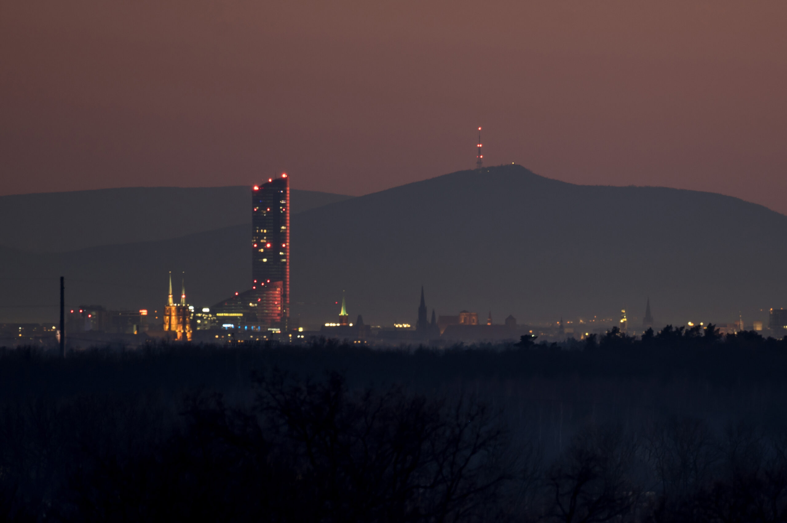 Styczeń 2024. Masyw Śnieżnika. Trzydzieści minut po zachodzie słońca. Nowa wieża na Śnieżniku niczym morska latarnia. Więcej >>>>